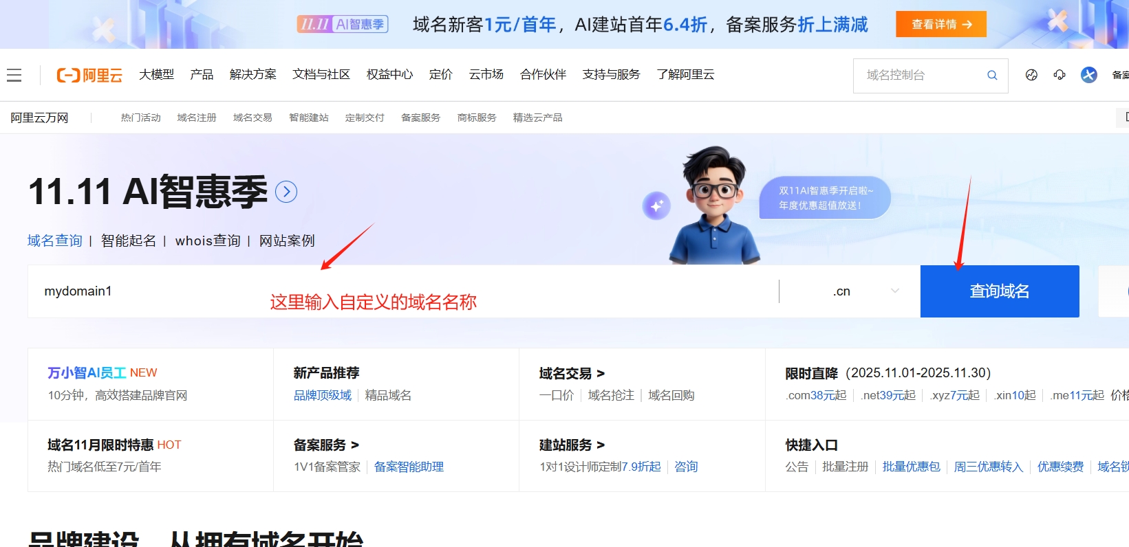 输入你自有的域名(必须为阿里云备案域名),可以为二级子域名,这样可以不影响你原有的业务。例如你的域名为 mydomain.com,可以这里提交一个a.mydomain.com作为短链域名.