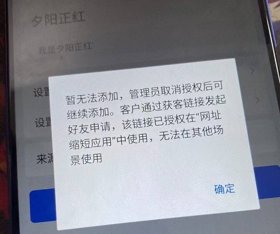 - 用户加企微时提示,该链接已授权在“网址缩短应用”中使用,无法在其他场景使用