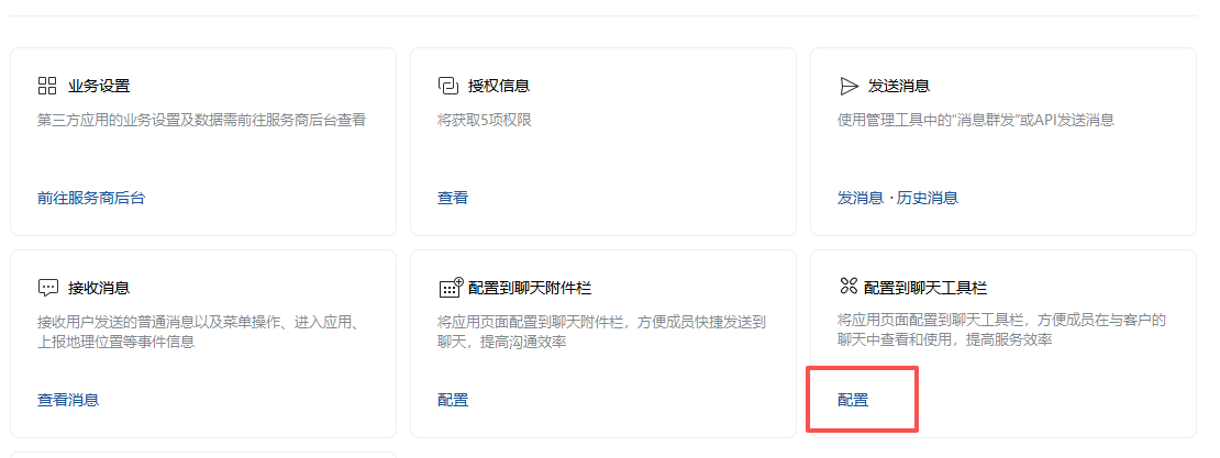 2. 找到"配置到聊天工具",点"配置"